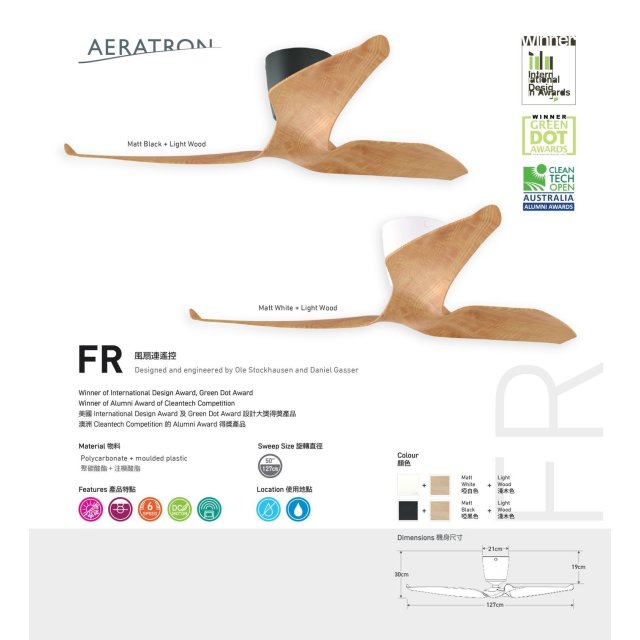 Irene - 5HLK 42 英寸(107 厘米)/52 英寸(132 厘米)/60 英寸(152 厘米)風扇燈