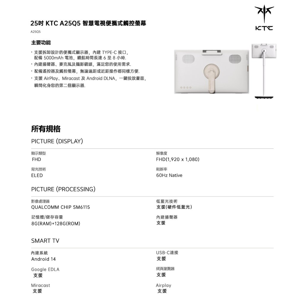 25" 智能電視便攜式觸控螢幕 A25Q5